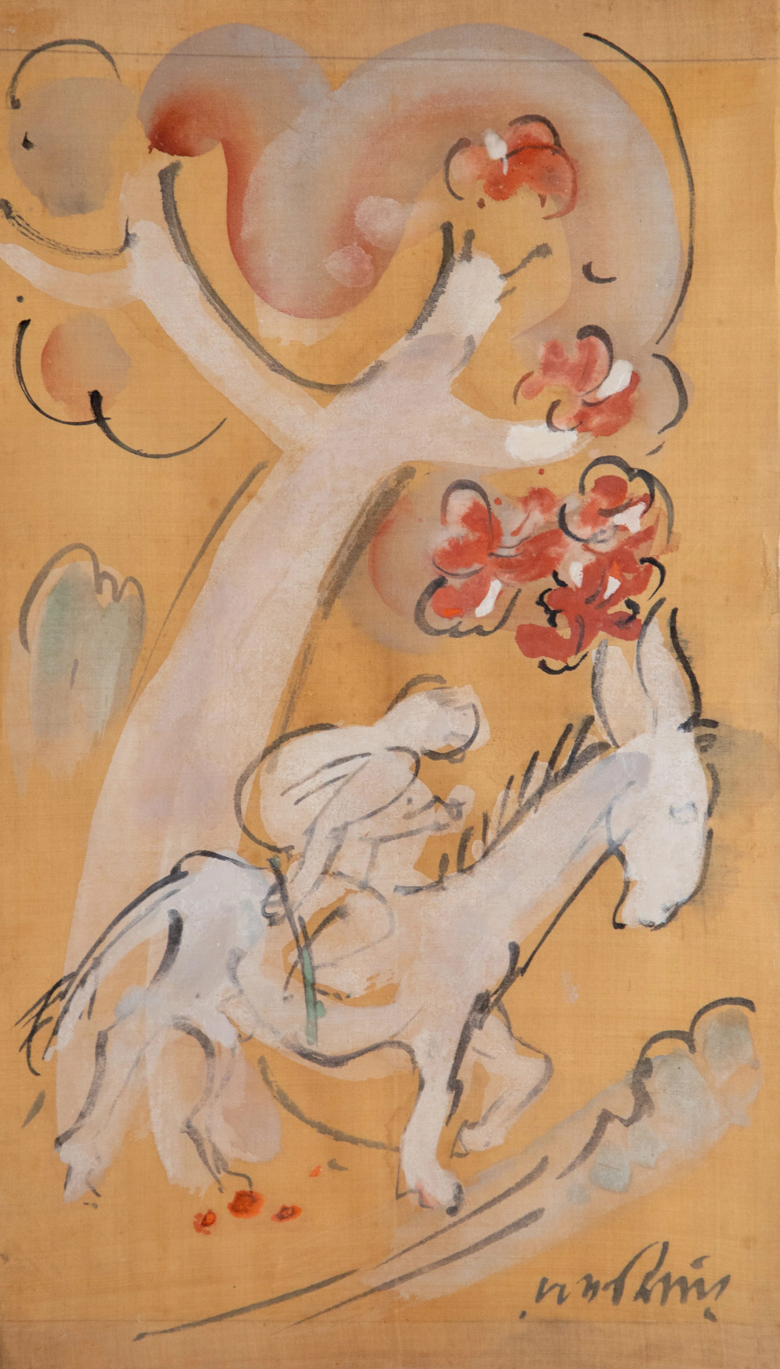 Ramkinkar Baij | Untitled |Painting on Silk | 17.25 x 10.25 in